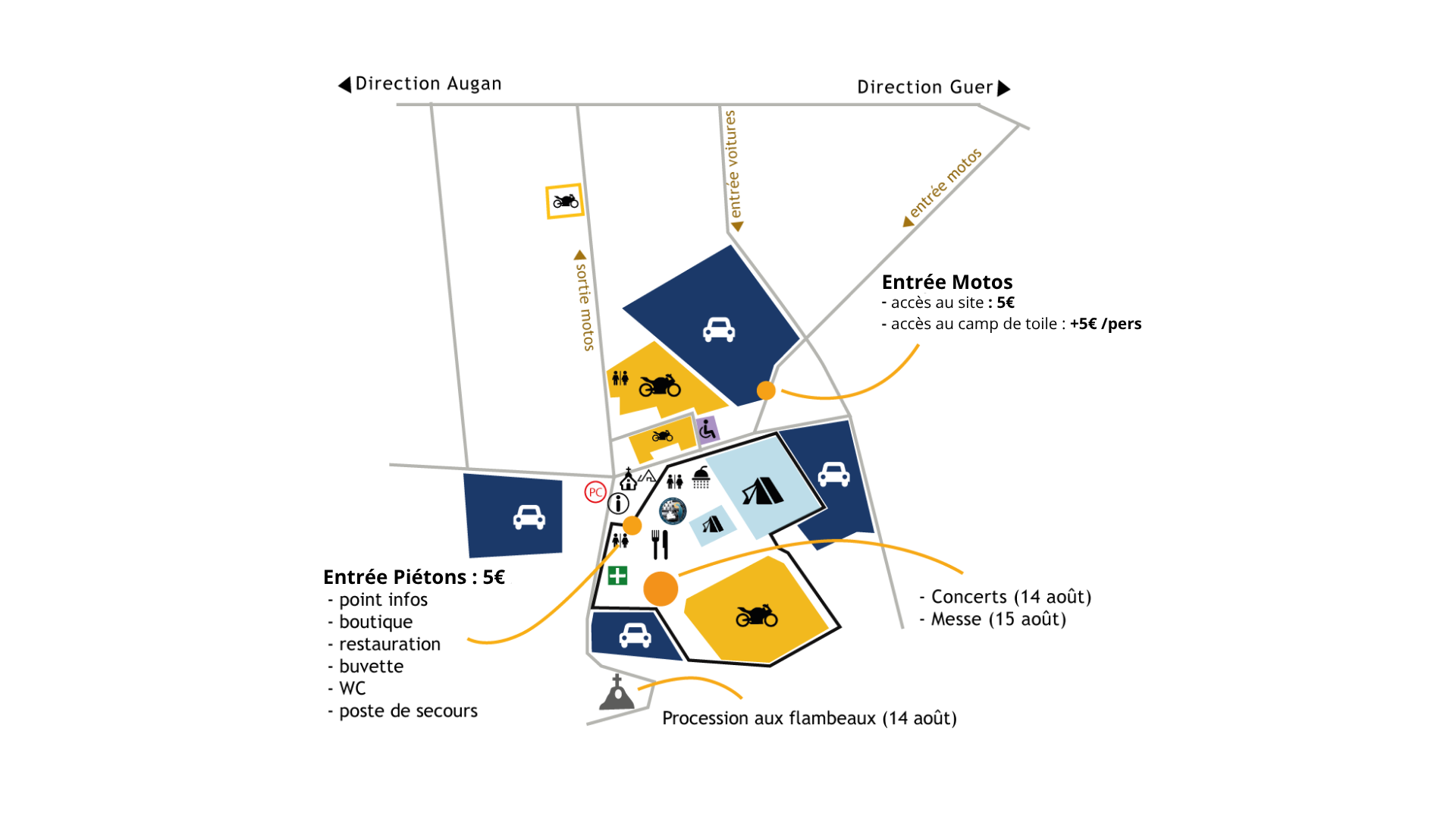 Ce tarif comprend l’accès au site, l’accès au camp de toiles, les cérémonies religieuses et la bénédiction (gratuites), les concerts ainsi que la participation à la balade le 15 août.